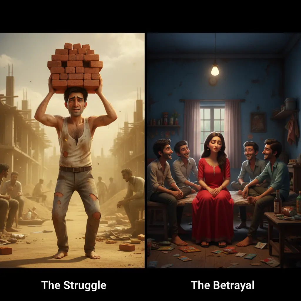 महेश ने अपनी जवानी झोंक दी। वह दिन भर “दिहाड़ी मजदूरी” करता, ईंट-पत्थर ढोता ताकि शारदा को दो वक्त की रोटी खिला सके। शाम को जब वह थक-हार कर घर आता, तो उसका शरीर टूट चुका होता था। लेकिन शारदा? शारदा को महेश की मेहनत नहीं, बल्कि अपनी ख्वाहिशें पूरी न होने का मलाल था। उसे सजने-संवरने का शौक था, उसे ऐश-ओ-आराम चाहिए था, जो एक मजदूर महेश उसे नहीं दे पा रहा था।